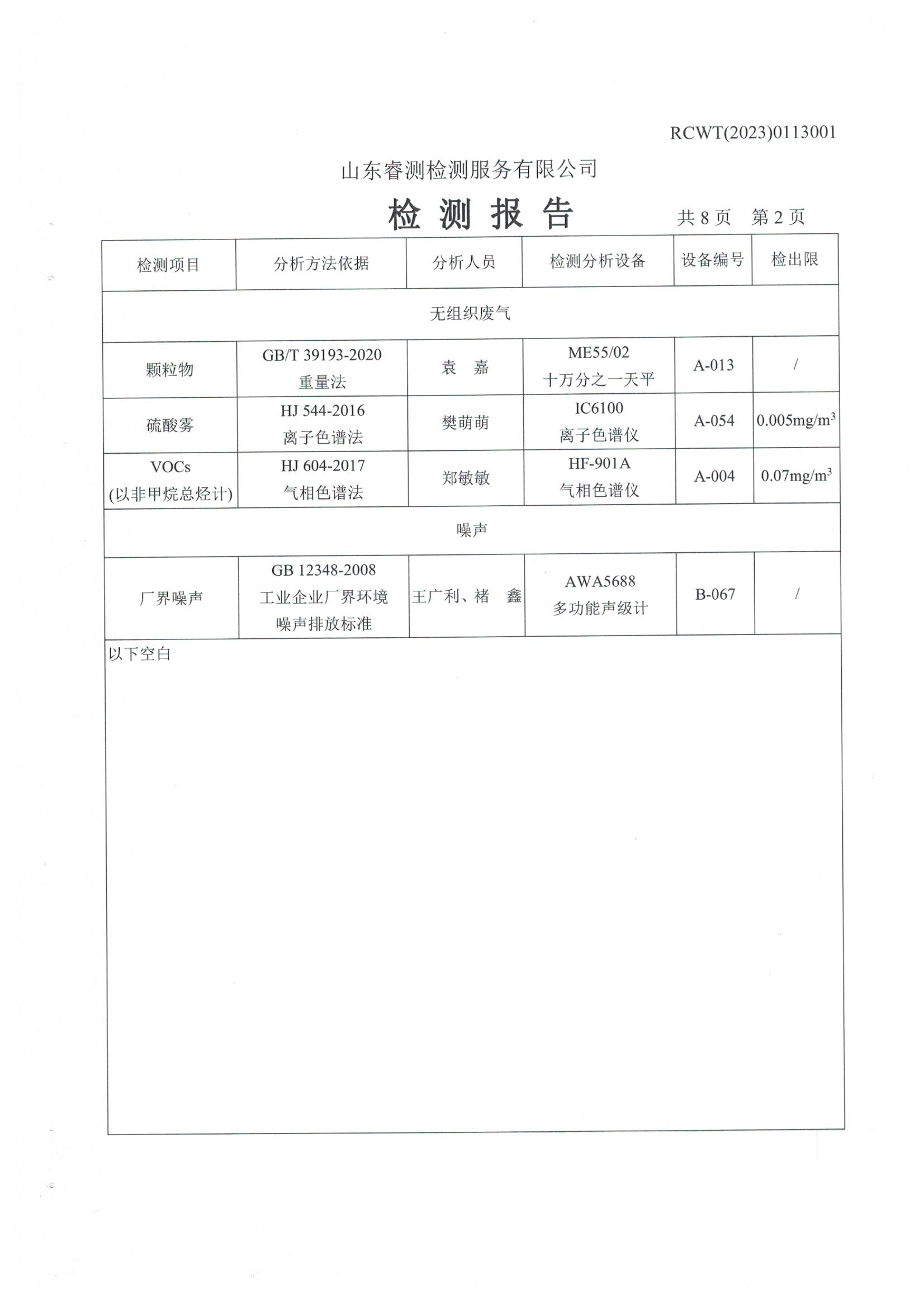 2023年第1季度檢測報告