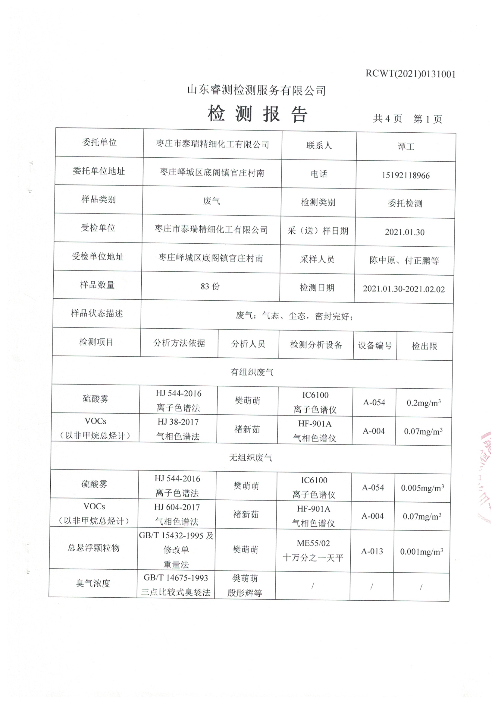 2021年第一季度自行檢測報告