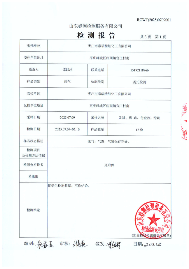 2025年泰瑞精細(xì)化工有限公司土壤檢測(cè)報(bào)告